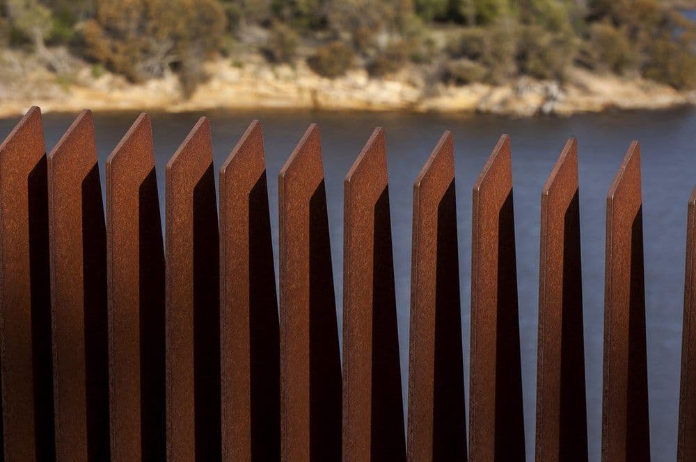 But up on top of the museum, on the plaza, we wanted people to be able to see through, so we solved that problem with the rusted steel blades, shaped to continue the line of the wall. So that was a pretty neat solution.