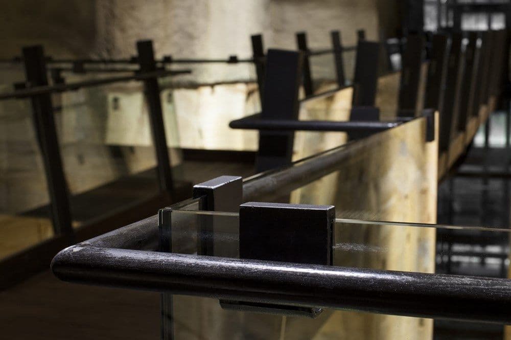 But we started with a whole lot of other ideas to solve the balustrade problem. Inside the museum, Nonda had this idea of steel rods connecting a steel handrail at the top but the bottom was on a zigzag so the rods sort of wove in and out around the void. David hated it.