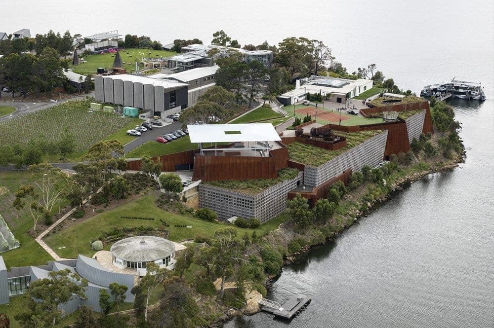 JP: Probably more importantly, Mona was never meant to be a monumental site, and it was never meant to be about the building. This has sort of—we’ve probably contradicted ourselves there. But we didn’t want to place it on a pedestal like other museums. They impose on you, telling you that you should think like they do, or else you don’t understand. ‘Only the cultural elite can pass beyond this point.’ This undermining effect works when you approach Mona by land—when you arrive by ferry there’s no escaping a sense of the monumental. But that was the reason for going underground.