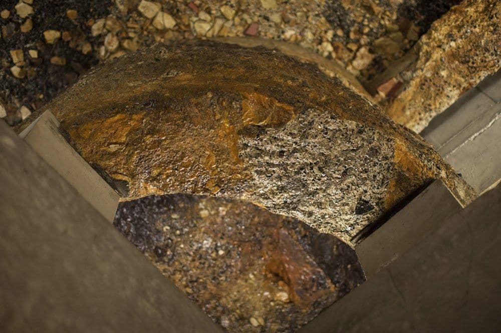 JP: No, because it turns out that what we thought would be quite a tricky thing was actually really easy. They just got a big circular saw on the back of a backhoe. It was two metres wide so it cut out a metre deep, and they would just run along the rock, cutting, cutting, cutting, and then they would get a digger with a big ripper at the back, a bulldozer, and rip along and pull all the rock off and get jackhammers and pull it off and then cut it again. You can see the saw marks in the wall, down in the gallery.
